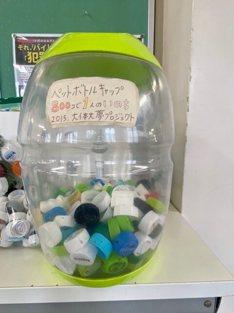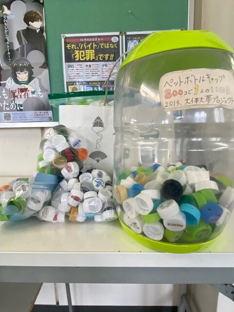 今年で10年目をむかえました。ペットボトルキャップボックスは現在も職員室前に設置されています。