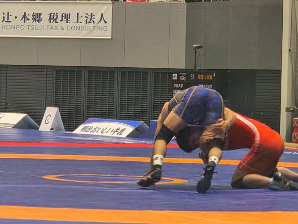 12月18日・19日に駒沢オリンピック公園総合運動場体育館にて開催された令和7年度天皇杯全日本レスリング選手権大会のフリースタイル57kg級に本校2年生の古澤大和が参加しました。