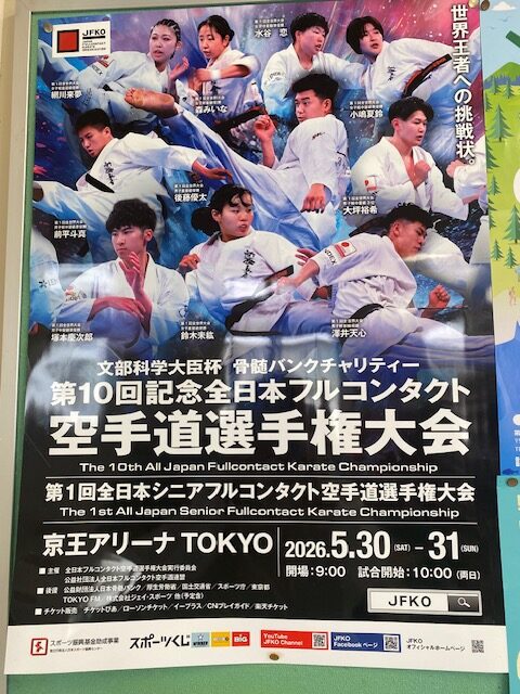 令和8年5月30日~31日の二日間、京王アリーナ TOKYOにて、「第10回記念 全日本フルコンタクト空手道選手権大会」
