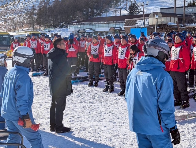 初めてスキーを体験する人も、インストラクターさんから丁寧に教えていただいたおかげで少しずつ滑れるようになってきました。