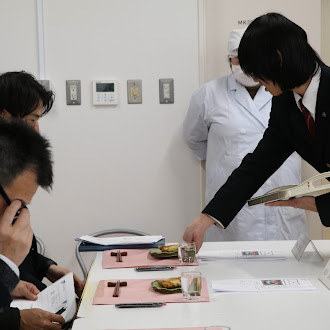 その後、熊取町役場の産業振興課の方、帝塚山学院大学の教授の方、本校教頭に料理を提供し、どちらが「熊取の新名物」にふさわしいかを決めました。