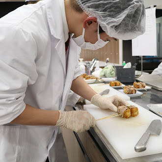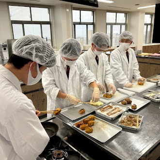 本校から2班を選抜し、帝塚山学院大学さんの実習室で調理させていただき、調理後は「販売方法」などをプレゼンさせていただきました。