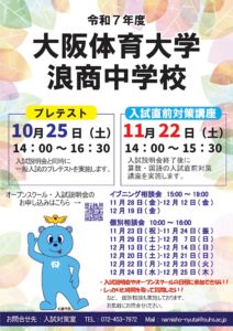 令和7年10月25日(土)入試説明会&プレテスト、令和7年11月22(土)入試説明会&入試直前対策講座を開催いたします。