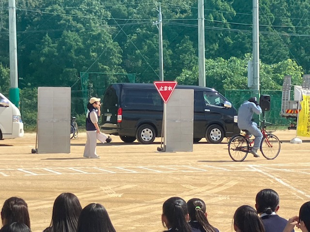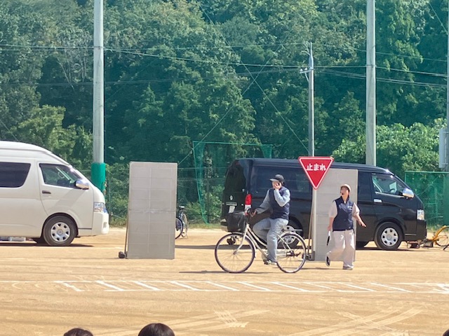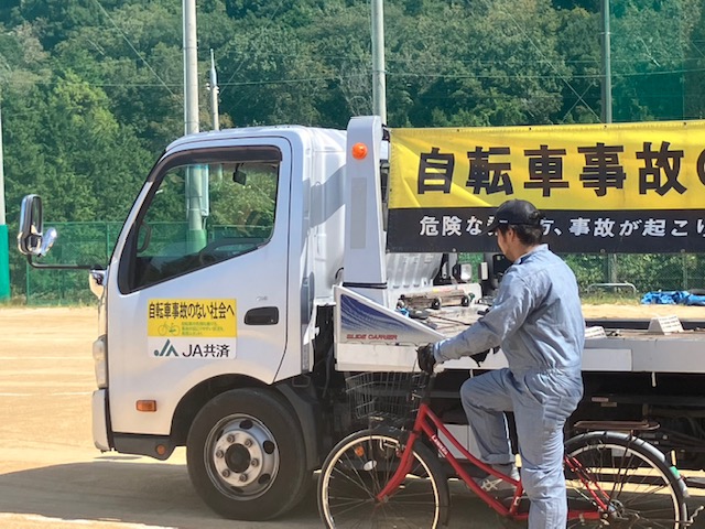 スタントマンさんによる本格的な実演講習は、自転車運転中に起こりえる危険な場面を再現した大変リアルな内容でした。
