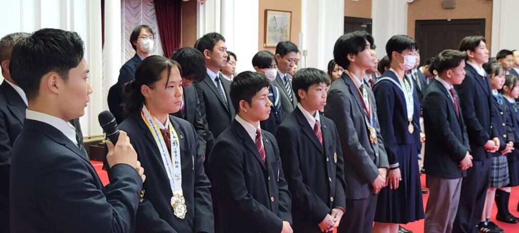 大阪府吉村知事より、優勝を成し遂げた各選手の皆さんに貴重なお祝いのおことば、